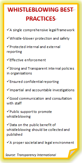 - Public awareness-raising about the benefits of whistleblowing.